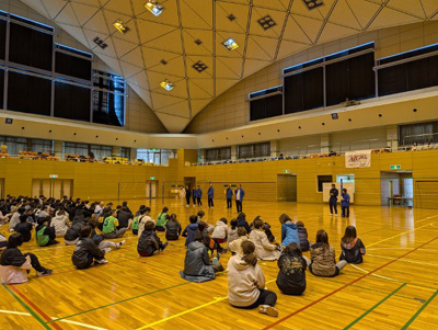 外の温かさのせいか、暖房が入った体育館が暑くなりすぎて、途中で暖房を切る一幕もありました。